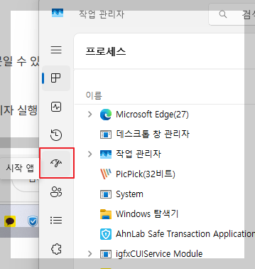 - ‘시작 앱’ 탭 클릭