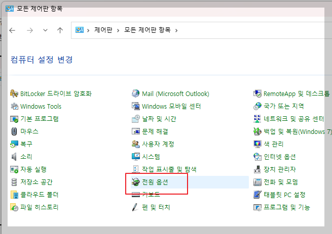 3. 전원 옵션 클릭