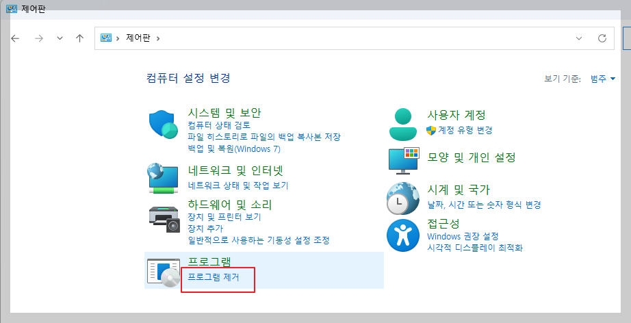 - ‘프로그램 제거’를 클릭