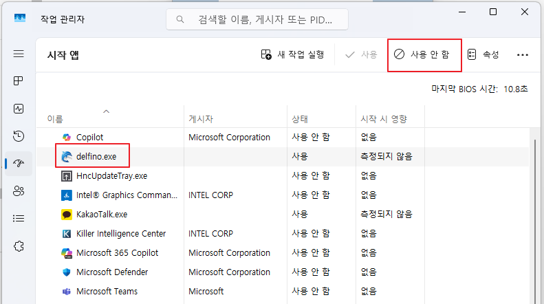 - 광고성 프로그램이 보이면 ‘사용 안 함’으로 변경