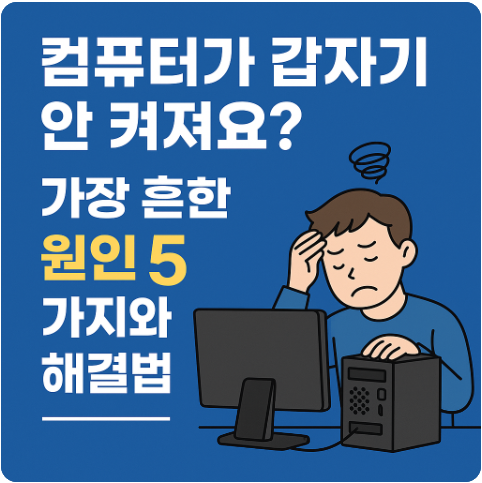 그래서 오늘은 컴퓨터가 갑자기 안 켜질 때, 실제로 많이 발생하는 원인 다섯 가지를 정리해봤습니다.